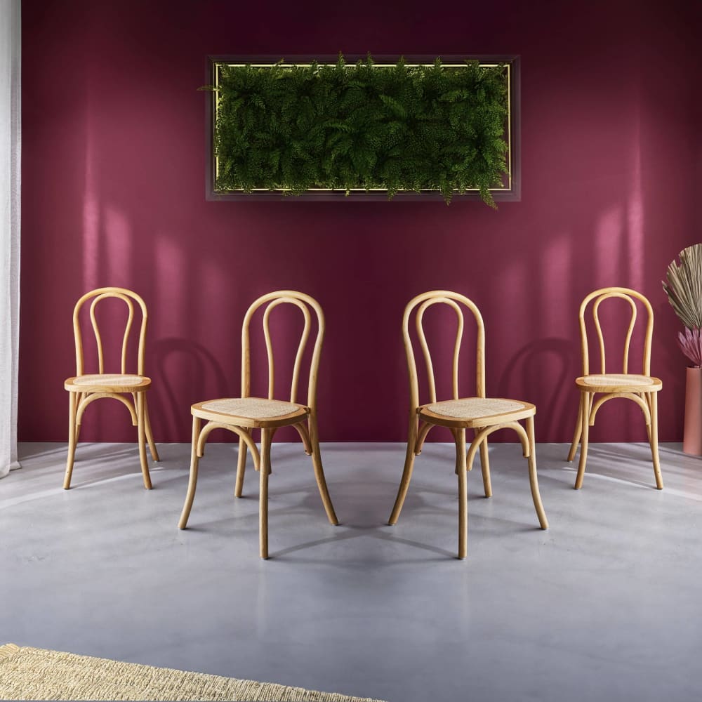 4er-Set Vintage-Stühle aus Holz mit Sitzfläche aus Rattan, naturfarben von sweeek