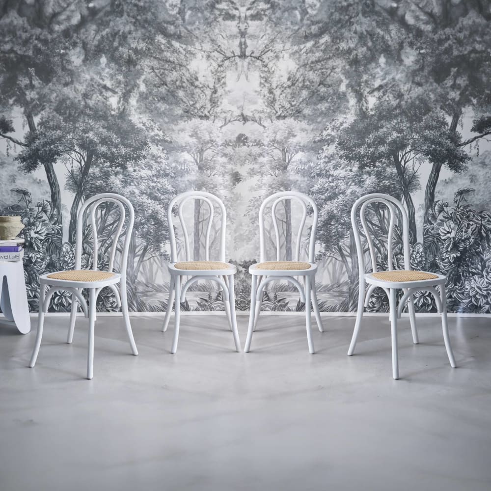 4er-Set Vintage-Stühle aus Holz mit Sitzfläche aus Rattan, weiß von sweeek