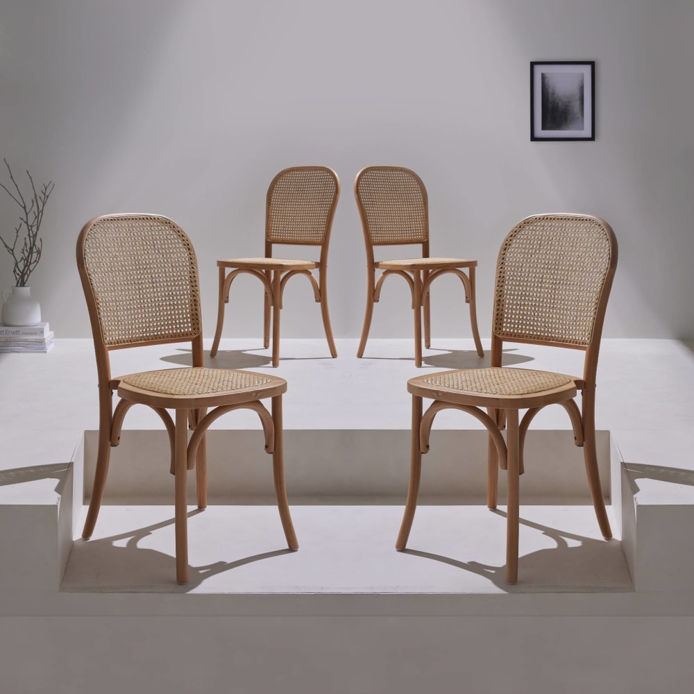 4er-Set Vintage-Stühle aus Holz und Rattan, antikbraun von sweeek