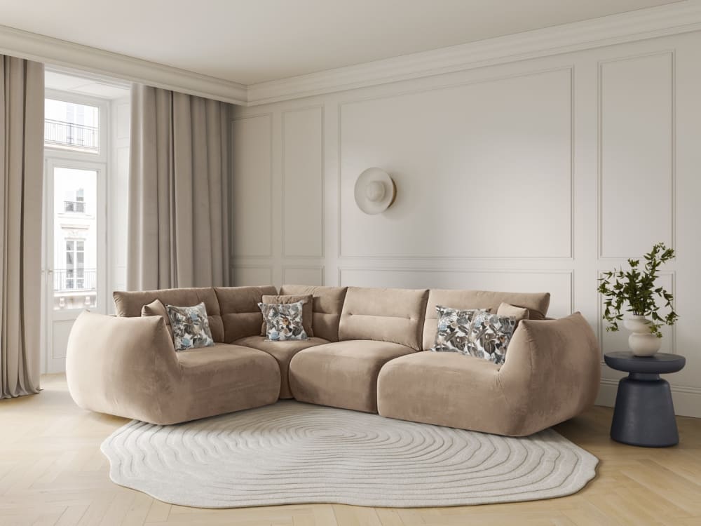 5-Sitzer Ecksofa links aus Samt mandelbeige von CXL by Christian Lacroix