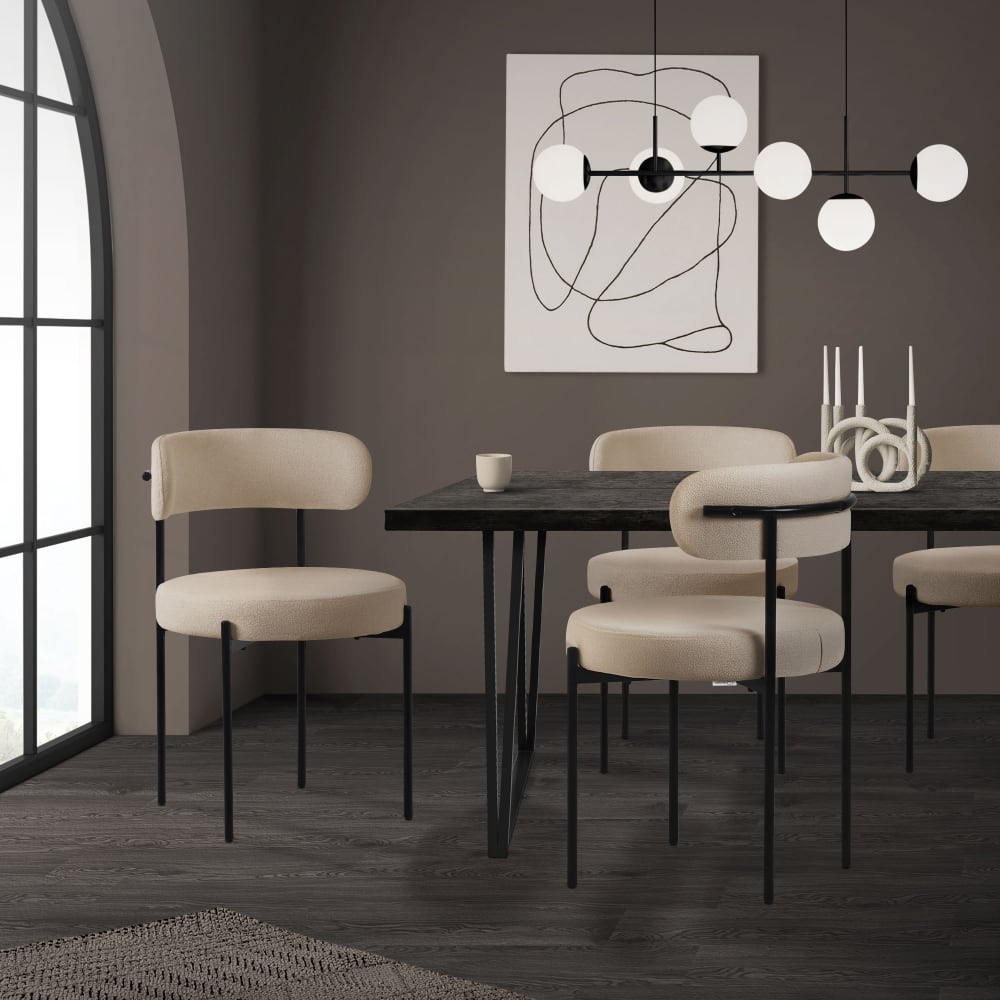 Wunderschöner Teddystoff: Weicher Teddystoff als Bezug auf einem Stuhl? Dieses 6er Set Esszimmerstühle ist eine super Wahl für bequeme Stühle mit einer praktischen Rückenlehne. Die kreisrunde Sitzfläche mit der runden Rückenlehne ist nicht nur ein Hingucker, sondern auch super bequem.