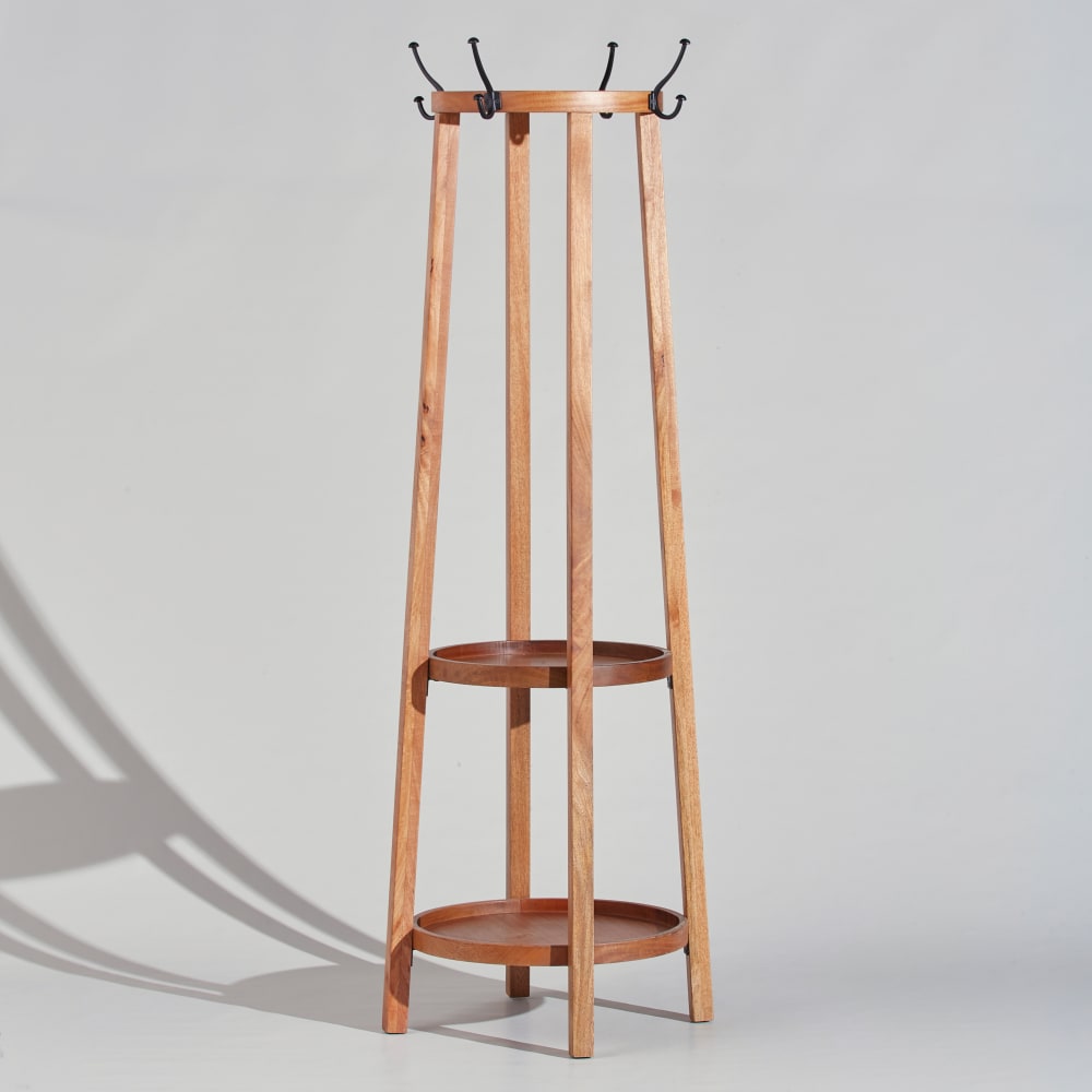 Diese Kleiderstange aus massivem Mangoholz mit schmiedeeisernen Haken ist ein einzigartiges Stück, das Ihrem Zuhause einen Hauch von Eleganz verleiht.Ihr industrielles Design harmoniert perfekt mit allen Einrichtungsstilen.Diese Kleiderstange eignet sich ideal zum Aufhängen von Kleidung, Accessoires oder Taschen.