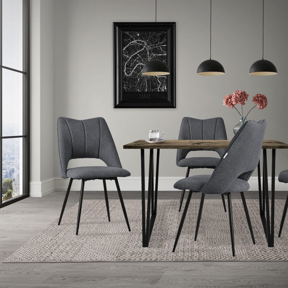 Dieser Esszimmerstuhl vereint Komfort und Stil auf perfekte Weise und wertet jedes Esszimmer mühelos auf. Mit seiner weichen Polsterung und ergonomischen Bauform bietet er den idealen Sitzkomfort für lange Abende mit Familie und Freunden. Die stabile Konstruktion aus pulverbeschichtetem Stahl sorgt für Langlebigkeit und Zuverlässigkeit. Zudem schützt der Stuhl durch seine Kunststoffbodenschoner deinen Bodenbelag und ist dadurch auch ideal für empfindliche Oberflächen geeignet. Mit seinem modernen Look passt dieser Stuhl in viele Einrichtungsstile und ist eine echte Bereicherung für dein Zuhause!