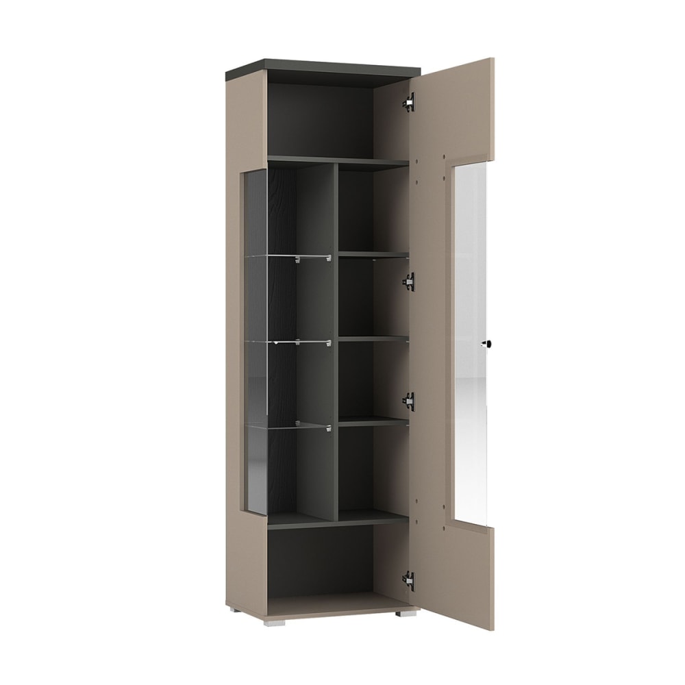 Vitrine 1 Tür Opio Taupe und AnthrazitEuropäische Herstellung Kollektion :: Opio Farben: Taupe und Anthrazit Materialien : Laminierte Platten Eigenschaften: 1 Tür, teilweise verglastÖffnung der beiden Seiten bei der Montage zu bestimmen2 große Regale6 kleine Regale, davon 3 verglastEmpfohlene Höchstlast: 5 kg auf den Regalen und 3 kg auf den verglasten RegalenLEDs nicht inbegriffen Gewicht und Maße: 46 kg55 x 35,5 x 179,6 cm Sicherheitshinweise: Befestigen Sie das Möbelstück sicher an der WandBeachten Sie die empfohlenen Höchstlasten, die in den Anleitungen angegeben sind. Garantie: 24 Monate Sicherheitsanweisungen: Möbel korrekt montieren – Empfohlene maximale Belastung laut Anleitung einhalten – Möbel fest an der Wand befestigen Gesamtanzahl der Kartons : 1 Gewicht und Abmessungen der Kartons: 46 kg183 x 38,5 x 16 cm Gesetzlicher Vertreter: NAPKINS, 30-34 avenue Henri Matisse, 06200 Nizza, Frankreich