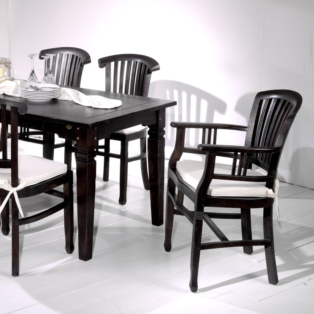 Liebevolle Handarbeit, Stil und Charme der Kolonialzeit, Behaglichkeit fern der Hektik des modernen Alltags – alles wichtiger denn je. Aus dem vollen Holz wie vor 100 Jahren und unter Verzicht auf moderne Maschinen bekommt jedes Möbelstück die handwerkliche Individualität, die es heute kaum noch gibt. Kombiniert zum antiken oder rustikalen Design – diese Sitzgelegenheit passt immer und bietet einen bequemen Sitzplatz für Sie und Ihre Gäste. Passend zu diesem Stuhl gibt es auch ein Kissen in Canvas natur (Modell 05999-00) oder in braunem Kunstleder (Modell 05969-00).