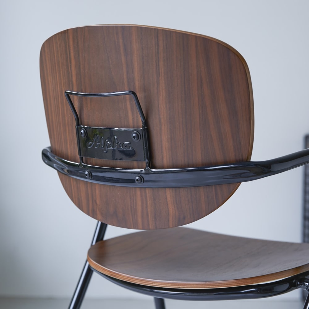 Stuhl aus schwarzem Metall und Walnussbaum. Sie werden die leichte Struktur und die schönen Proportionen lieben! Er sieht nicht nur toll aus, sondern ist dazu auch noch bequem. Sitzfläche: H 46 x B 44,5 x T 42 cm / Höhe der Armlehnen : 66 cm / Verkauf pro StückMaterial : WalnussMaße : H 80 x B 57 x T 56 cmGewicht : ca. 6,8 kg
