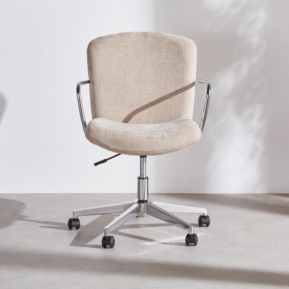 Mit dem OLSON Bürostuhl mit Rollen vereinen sich Produktivität und Komfort!Sein modernes Design und die klaren Linien verleihen Ihrem Arbeitsplatz einen Hauch von Modernität.Der beige Stoffbezug ist weich und strapazierfähig.Dank der Rollen können Sie sich mühelos bewegen und völlig frei arbeiten.Dieser Bürostuhl ist eine exklusive Kreation der Designer von Maisons du Monde.
