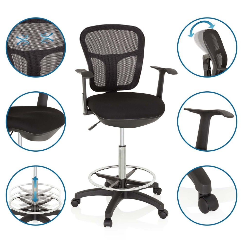 Ob in der Produktion, am Empfangstresen oder in professionellen Counterbereichen – der TOP WORK 108 ist ein erhöhter Drehstuhl mit anpassbarem Fußring, der sich mit seiner hohen Flexibilität jedem anspruchsvollen Arbeitsumfeld anpasst. Die neigbare Rückenlehne ist mit einem atmungsaktiven Netzstoff bezogen und sorgt auch bei längerem Sitzen für ein angenehmes Klima. Durch die stufenlose Sitzhöhenverstellung lässt sich die Sitzhöhe im Handumdrehen auf den Nutzer und seine Arbeitsaufgaben einstellen. Sichern Sie sich den TOP WORK 108 und genießen Sie Flexibilität und Komfort am Arbeitsplatz.