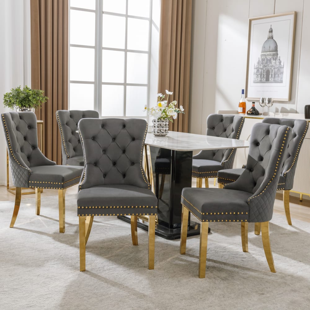 6er-Set Esszimmerstühle, Samtbezug, grau von Flieks