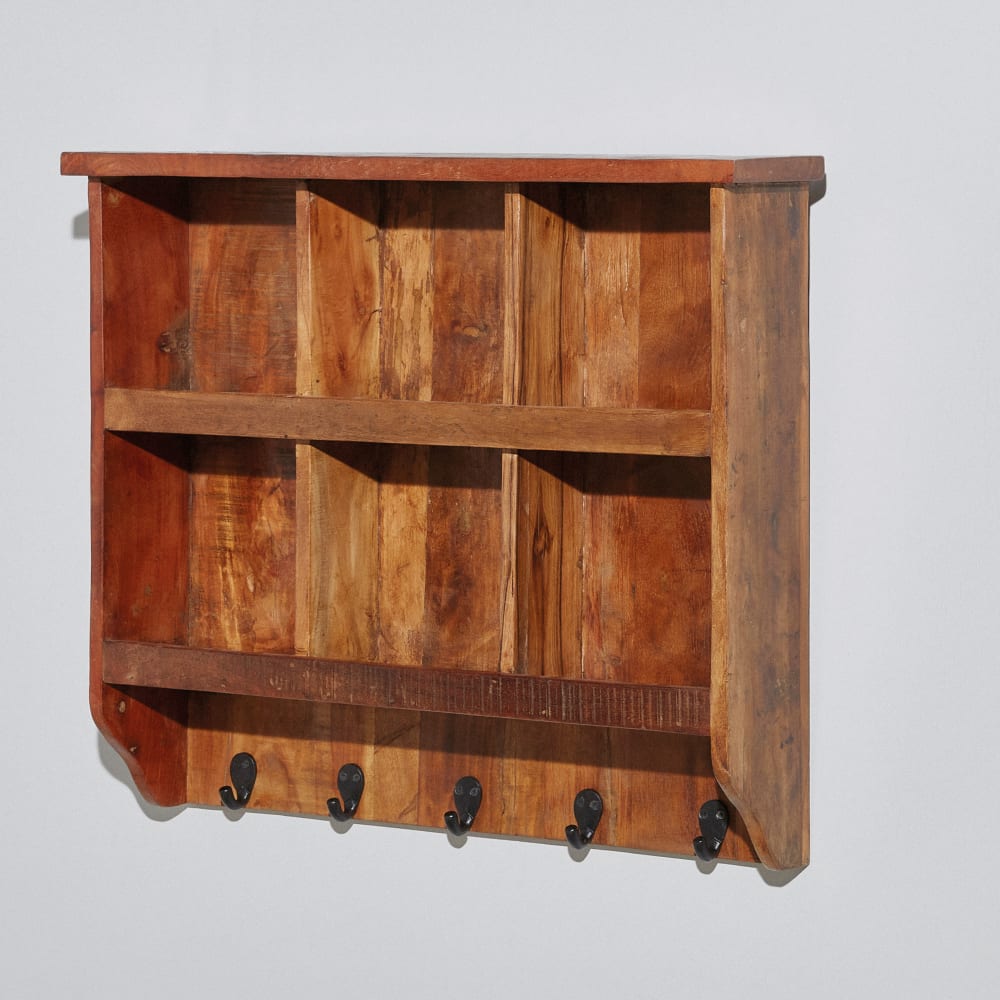Das Wandregal EPIA aus Gusseisen und Holz ist ein echter Blickfang, der die natürliche Schönheit von Mangoholz mit funktionalem Design verbindet. Seine integrierten Fächer bieten cleveren Stauraum, um Ihre Lieblingsstücke zu organisieren oder Ihre wertvollsten Fundstücke zu präsentieren. Dieses Regal ist die perfekte Ergänzung, um Ihrem Interieur eine neoindustrielle oder rustikal-schicke Atmosphäre zu verleihen.