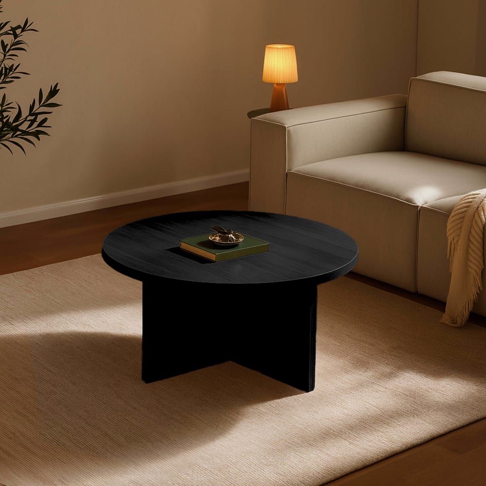 80 cm runder skandinavischer Couchtisch mit schwarzem Holzeffekt von Oviala