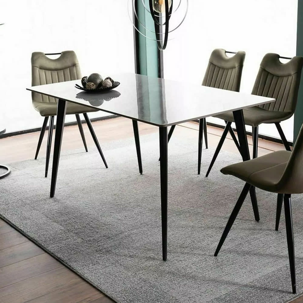 Ausstattung / Abmessung (ca. Maße):- Tischplatte aus Keramik- schwarzes Gestell aus Metall- rechteckige Tischplatte mit abgerundeten Ecken- schöne hochwertige Marmor-Optik- genug Platz für bis zu 6 Personen- Tischplattenstärke 1,2cm- B/T/H: 140cm / 80 cm / 75 cm