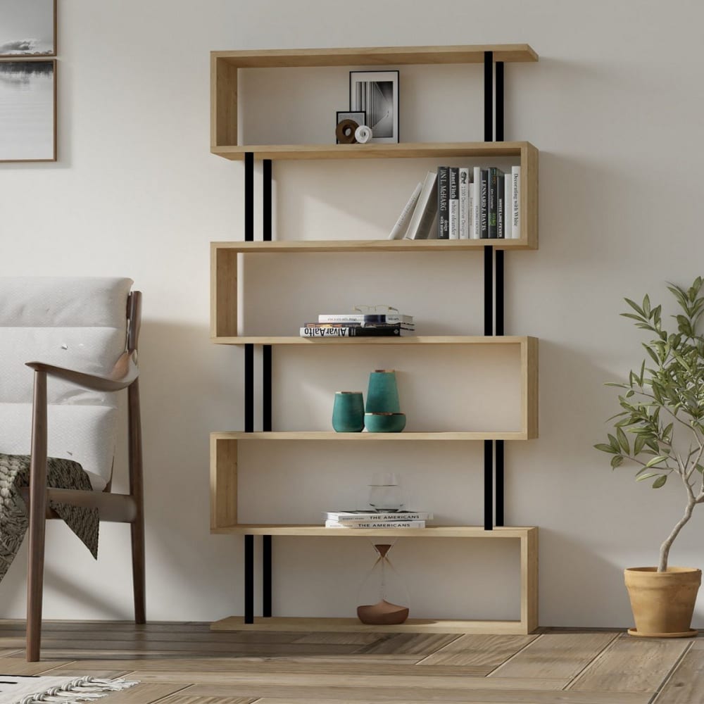 Produkteigenschaften: Mit seinen zahlreichen Regalen und zusätzlichen Aufbewahrungsmöglichkeiten bietet dieses Bücherregal viel Platz, um Ihre Lieblingsbücher, Dekorationsgegenstände und kostbaren Erinnerungen zur Schau zu stellen. Kann zur Stabilität und Sicherheit an der Wand befestigt werden. 100% melaminbeschichtete Spanplatten. Mit dem FSC-Zertifikat versehen, das bestätigt, dass das Produkt zu 100% aus recyceltem Holz aus nachhaltig bewirtschafteten Wäldern hergestellt ist. Produktabmessungen: Breite 22 cm x Länge: 90 cm x Höhe: 162,6 cm – Nettogewicht: 20,37 kg. Abmessungen des Pakets: Paket Nr. 1: Länge 97 cm x Höhe 28 cm x Tiefe 18 cm – Bruttogewicht: 21 kg.