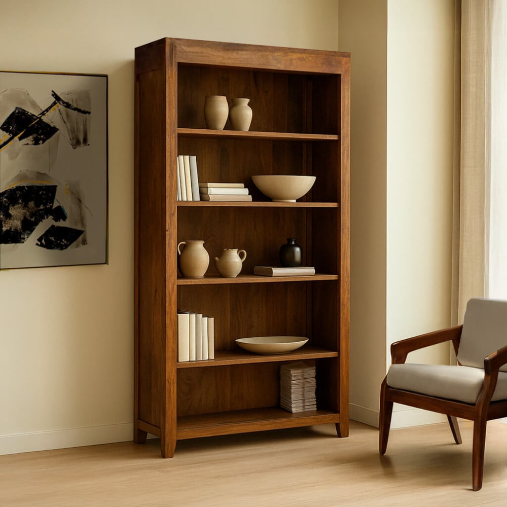 Das Bücherregal ASPEN wird handgefertigt aus braunem Mangoholz hergestellt und verfügt über eine solide Struktur. Es hat 5 Regalböden, die perfekt sind, um all Ihre Bücher zu verstauen. Es ist keine Montage erforderlich.