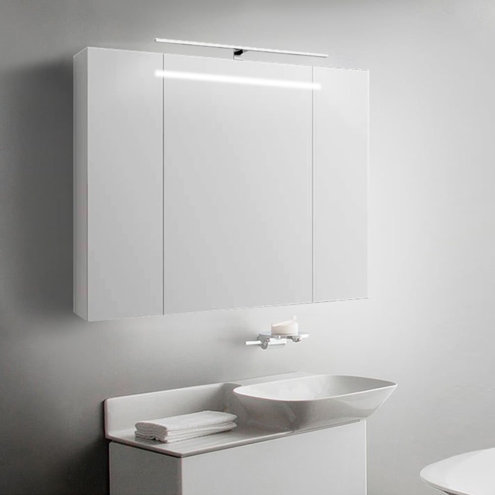 Verleih deinem Badezimmer dank diesem Spiegelschrank mit LEDs eine stilvolle Optik und Funktionalität an! Der Badezimmerschrank hat eine robuste Konstruktion sein dezentes, stimmungsvolles Licht ist perfekt für die tägliche Routine, ebenso besitzt der Spiegelschrak eine praktische Steckdose und einen Schalter für die LEDs.