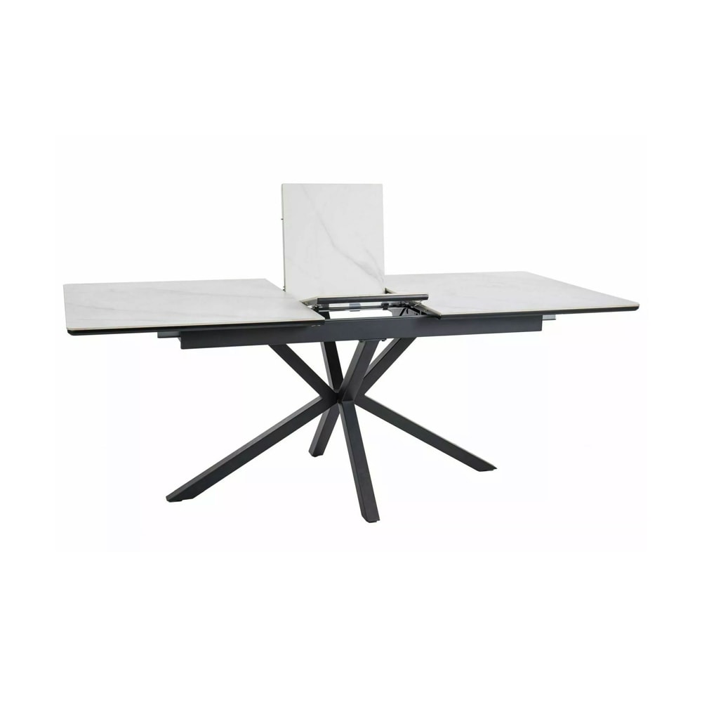 Ausstattung / Abmessung (ca. Maße):- Tischplatte aus Keramik und Faserplatte- stilvolles Metallgestell in schwarz- genug Platz für bis zu 10 Personen- Tischplatte ausziehbar, mit Einlegeplatten – formschöne Kunstledergriffe an der Unterseite der Einlegeplatte für ein einfaches Ausziehen