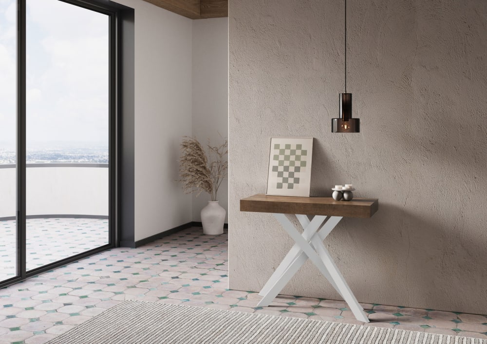 Ausziehbarer Konsolentisch Krack Small, vielseitig und robust, ein perfektes Möbelstück für jeden Raum im Haus: Eingangshalle, Küche, Esszimmer, Wohnzimmer oder Flur.