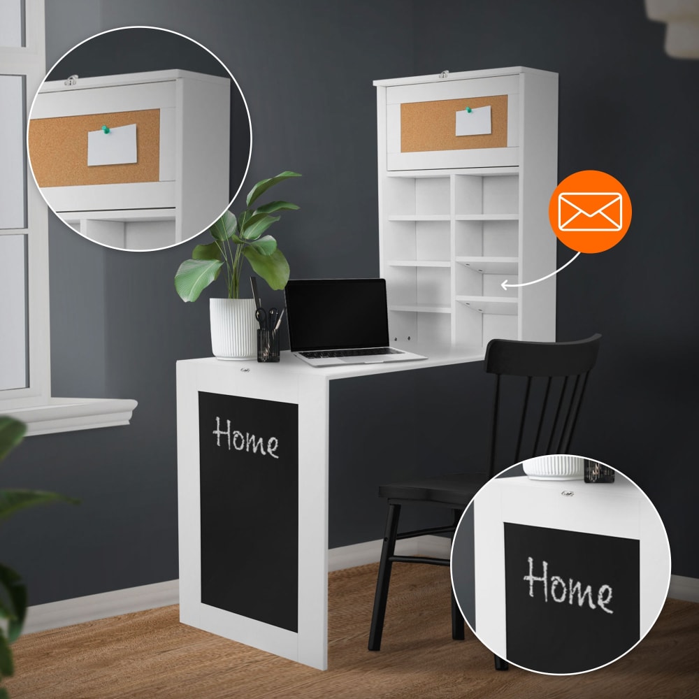 Du benötigst einen Tisch oder gar einen Schreibtisch, aber hast nur wenig Platz zur Verfügung? Dieser platzsparende Wandklapptisch eignet sich hervorragend für kleine Räume. Der Klapptisch wird an der Wand montiert und kann im Handumdrehen als Schreibtisch, Küchentisch oder auch als Esstisch verwendet werden. Hinzu kommt Stauraum im Regal und eine praktische Tafel am Fuße des Tisches. Hier kannst du zum Beispiel deine To-Do‘s aufschreiben oder benötigte Einkäufe notieren.