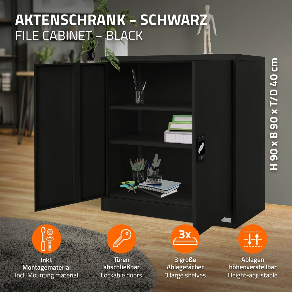 Aktenschrank Metallschrank 90x40x90 cm Schwarz von ML-Design