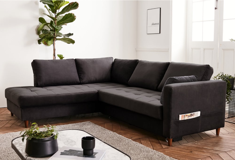 Anna – canapé d’angle gauche – 5 places – convertible – en velours von Lisa Design