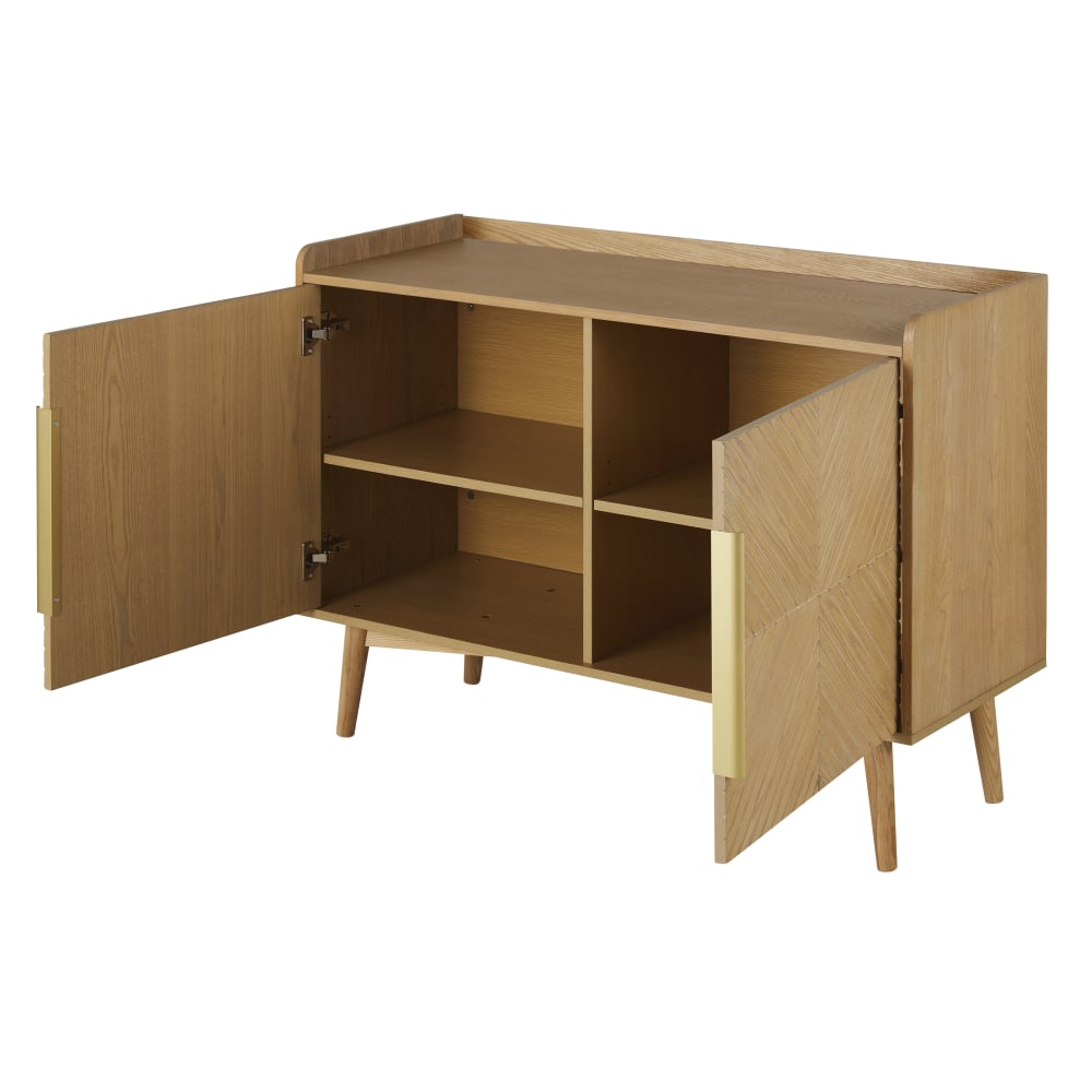 Wir sind verliebt in den eleganten Vintage-Stil und die Originalität der Anrichte AXELLE!Hinter den 2 fein geschnitzten Türen mit grafischen Motiven verbergen sich 2 herausnehmbare Regalböden.Die Griffe aus goldfarbenem Metall verleihen dieser Anrichte eine schöne, elegante Retro-Note.Dieses Möbelstück ist eine Originalkreation der Teams von Maisons du Monde.Erliegen Sie dem Charme dieser Anrichte? Entdecken Sie die gesamte Serie AXELLE und stimmen Sie Ihre Einrichtung in allen Räumen des Hauses aufeinander ab!