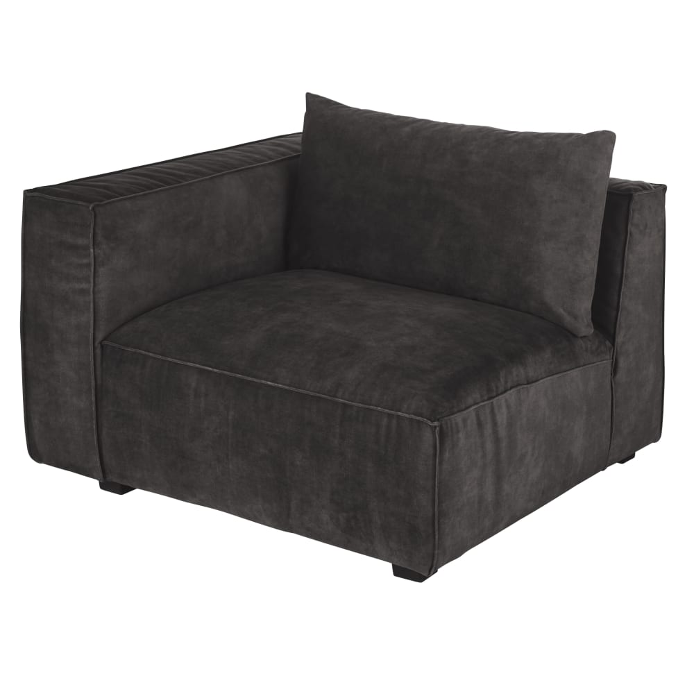 Armlehne links für modulares Sofa aus marmoriertem Samt, dunkelgrau von Maisons du Monde