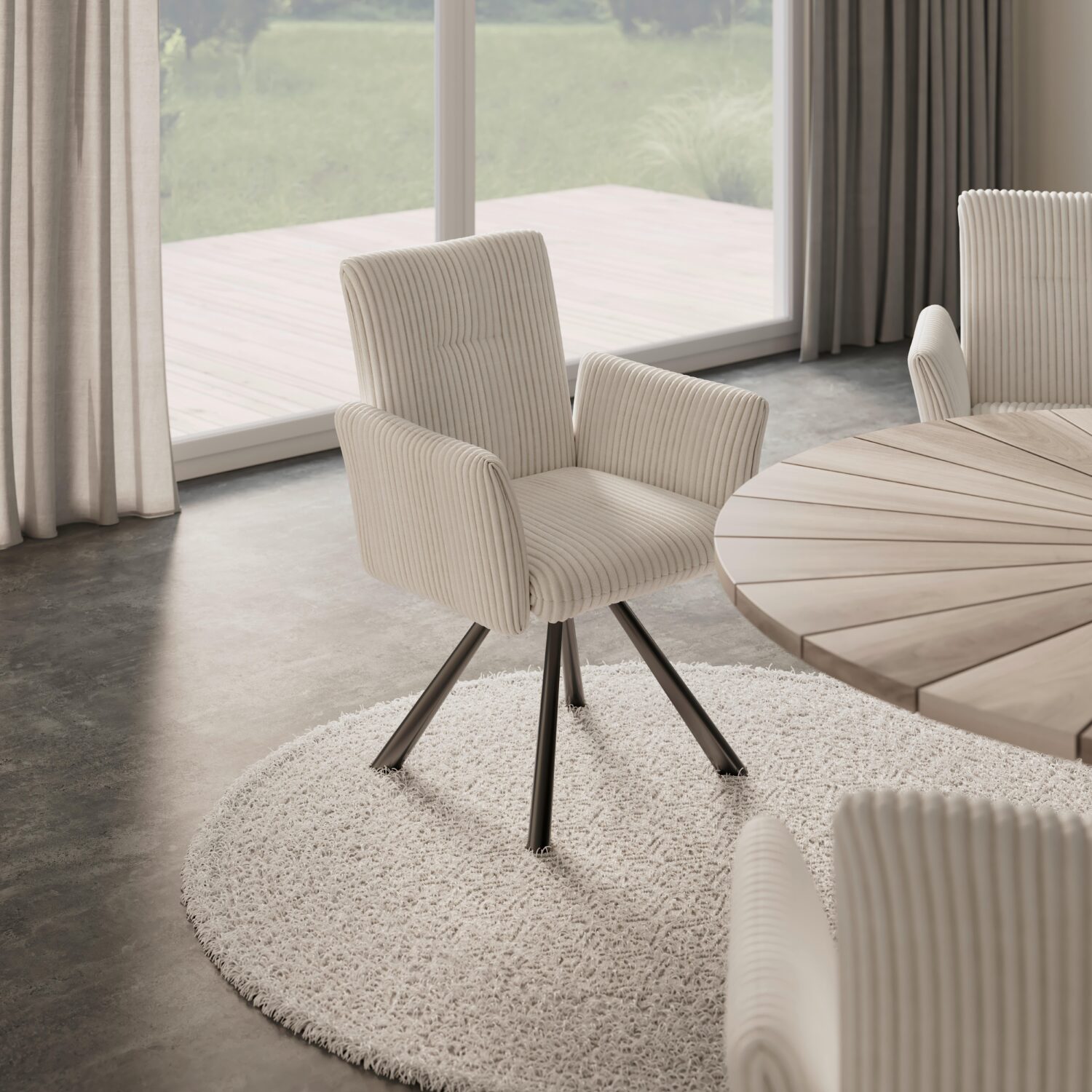 Armlehnstuhl Jade Beige Cord Drehbar Gepolstert
