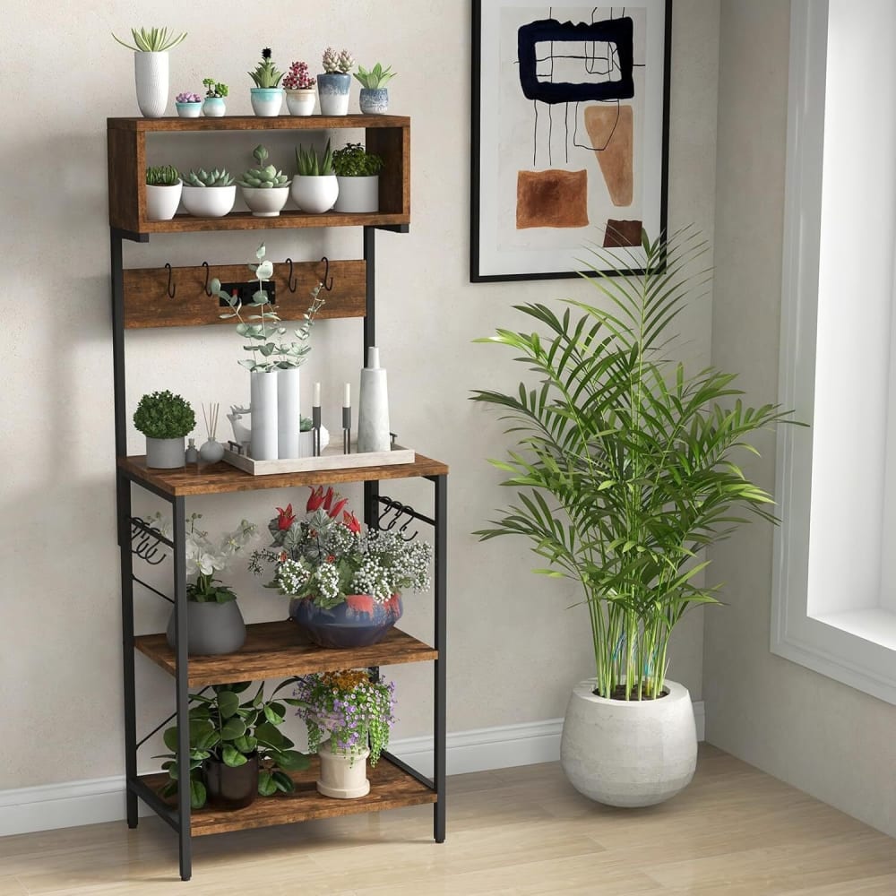 Üppiger Stauraum & Flexible Aufbewahrungslösungen: Unser 5-stufiges Bäckerregal bietet zonierte Aufbewahrungslösungen. Sie können Gewürze auf den oberen Regalen und kleine Geräte, Utensilien usw. auf der Arbeitsplatte oder den unteren Regalen platzieren. Zudem sind 10 S-Haken enthalten, um Tassen, Lappen oder Spatel aufzuhängen.