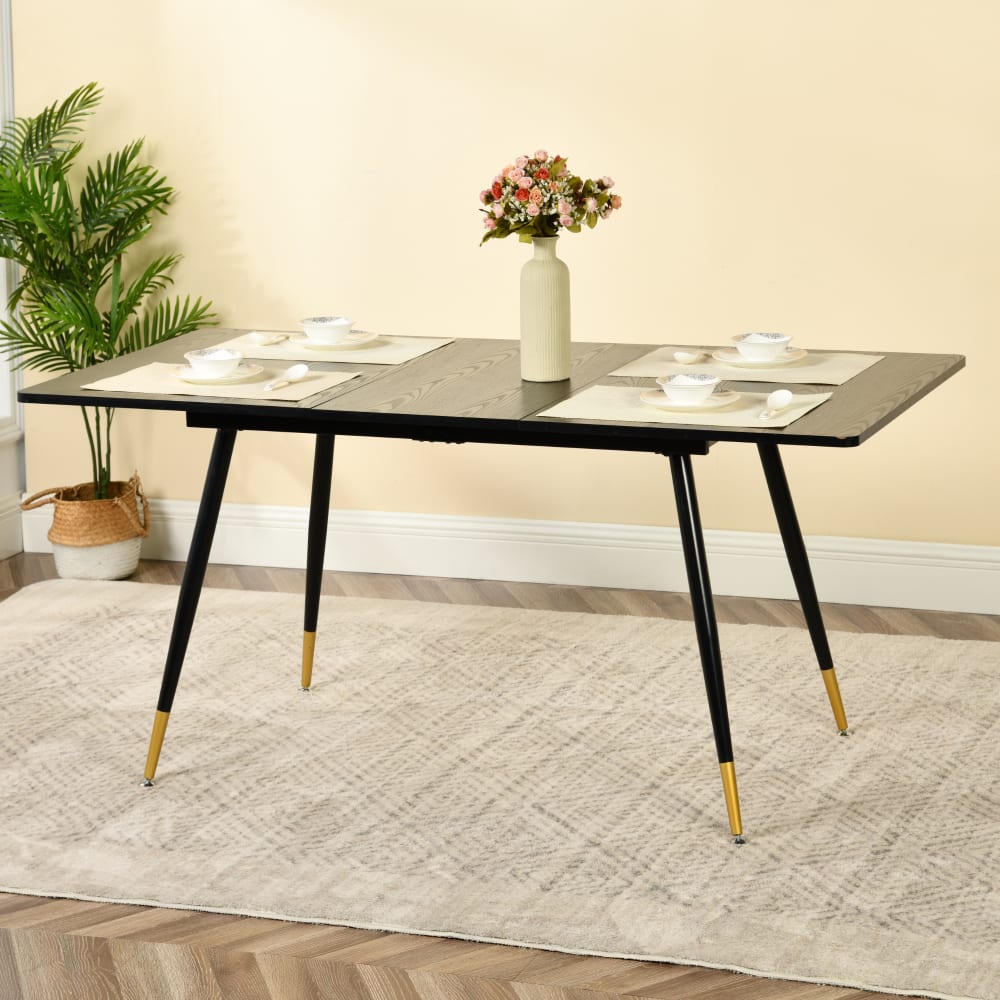 Schwarzer ausziehbarer rechteckiger Esszimmertisch im skandinavischen Stil mit goldenen Punktfüßen 120-160 WHALEN DARK WOOD STRETCH TABLE BG