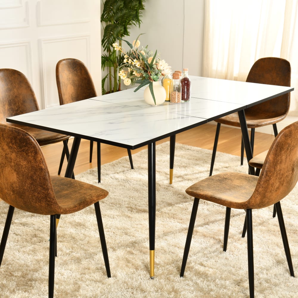 MODERNER UND ELEGANTER TISCH: Dieser Esstisch verfügt über ein modernes Design mit weißem und goldenem Marmoreffekt und passt daher zu verschiedenen Einrichtungsstilen. Sein raffiniertes Design und die klaren Linien schaffen eine warme und freundliche Atmosphäre in Ihrem Interieur.