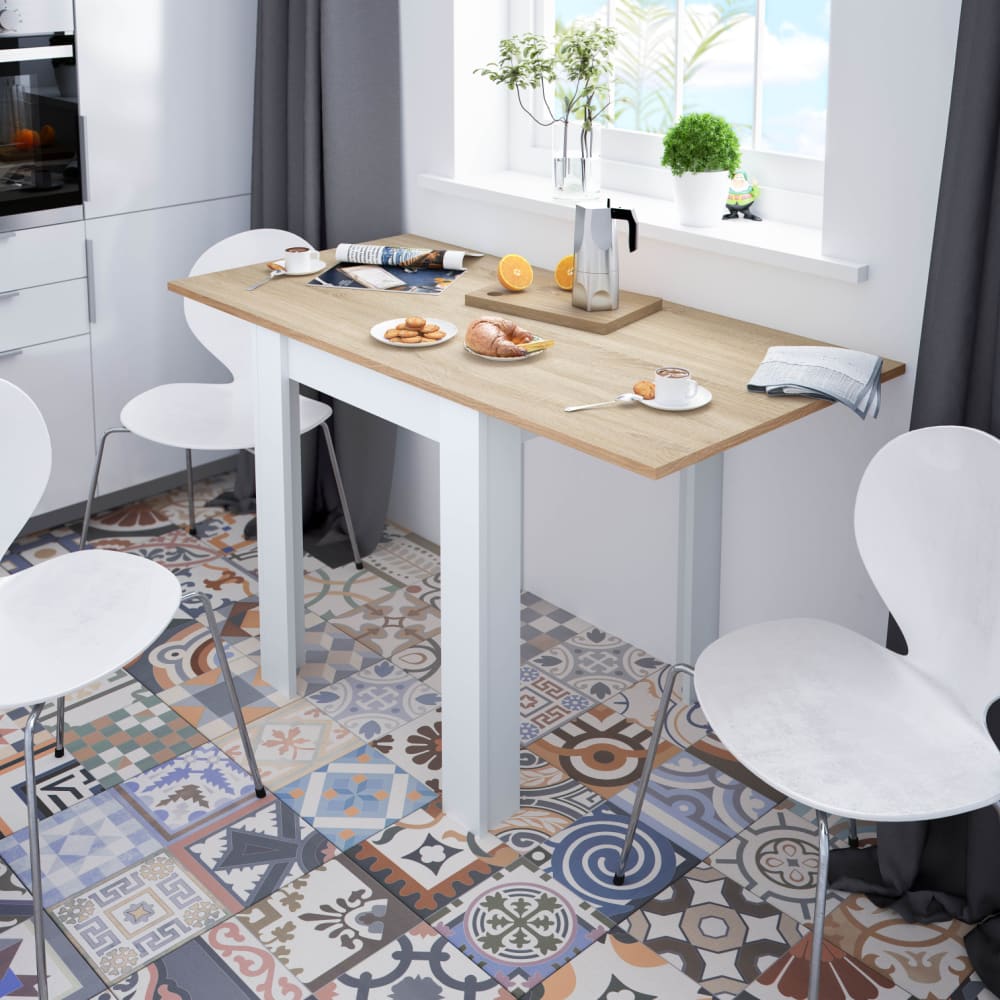Dieser ausziehbare Tisch ist ideal für kleine Räume, denn Sie können seine Nutzung je nach Ihren Bedürfnissen oder Wünschen anpassen und von einem kleinen Tisch zu einem Esstisch umwandeln. Sein modernes Design passt perfekt zu vielen verschiedenen Einrichtungsstilen. Produktmerkmale : Ausziehbarer Beistelltisch Buchöffnungssystem. Spanplatten mit melaminbeschichteter Oberfläche. Wäldern stammen. Tischplatte in 2 Teilen ausklappbar, geräusch- und kratzfeste ABS-Gleiter. Abmessungen des Produktes : Länge 67 cm x Breite 67 cm x Höhe 79 cm – Nettogewicht: 22,01 kg. Abmessungen des Paketes : Paket Nr. 1: Länge 76 cm x Höhe 84,5 cm x Tiefe 7,9 cm – Bruttogewicht: 22,46 kg.