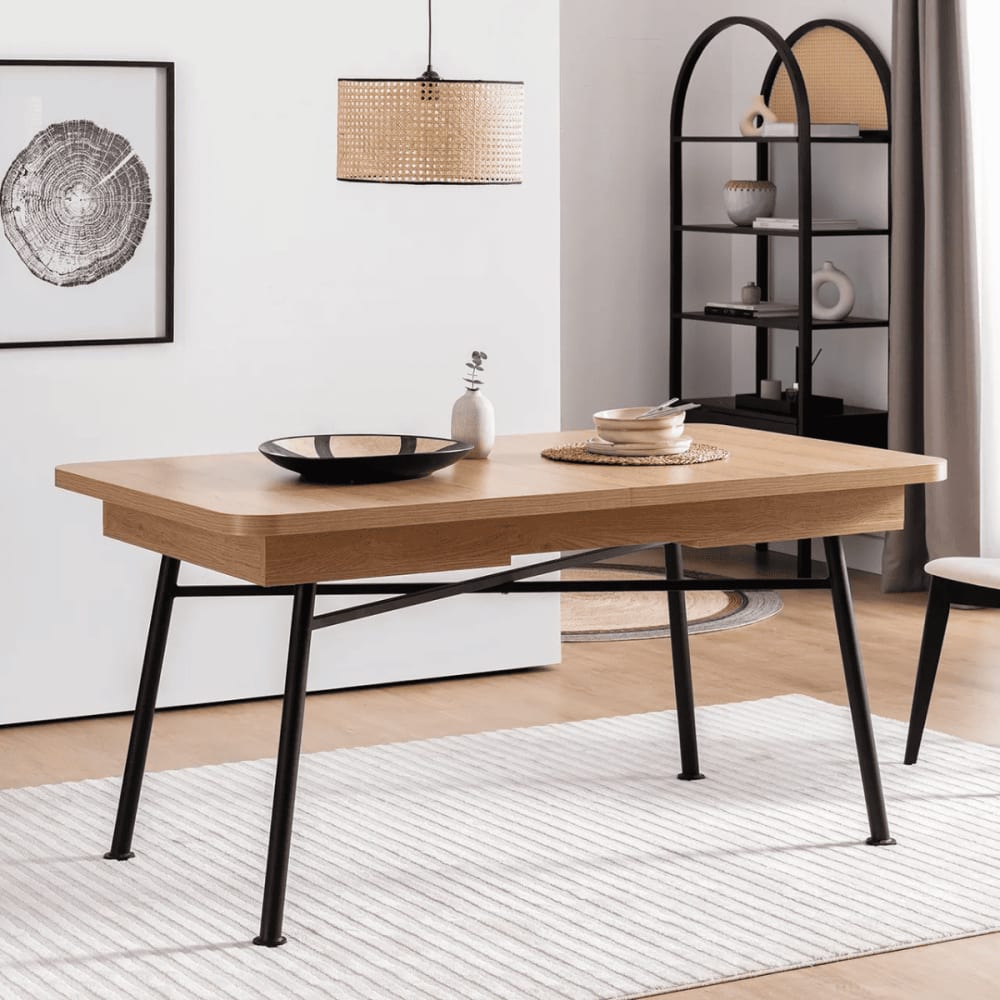 Ausziehbarer Tisch von 160 bis 198 cm, Dekor Eiche und Schwarz – NALA von Calicosy
