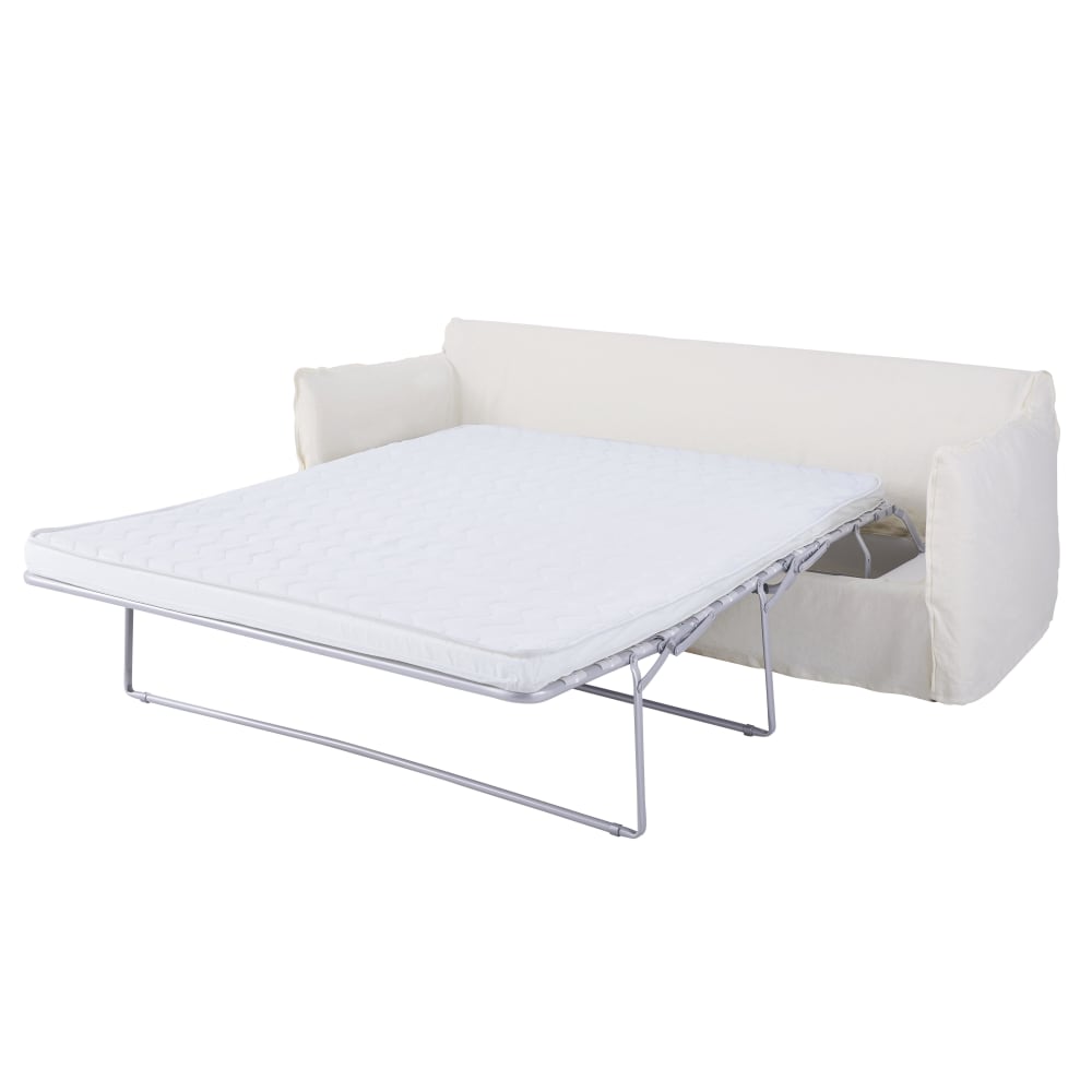 Ausziehbares 3/4-Sitzer-Sofa mit Bezug aus weißem Leineneffekt, Matratze 6cm von Maisons du Monde