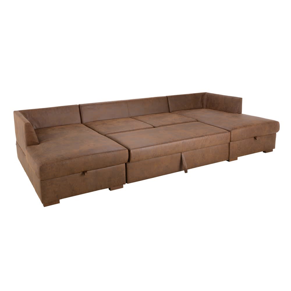 Ausziehbares 7-Sitzer-Panorama-Sofa mit braunem Microsuede-Bezug von Maisons du Monde