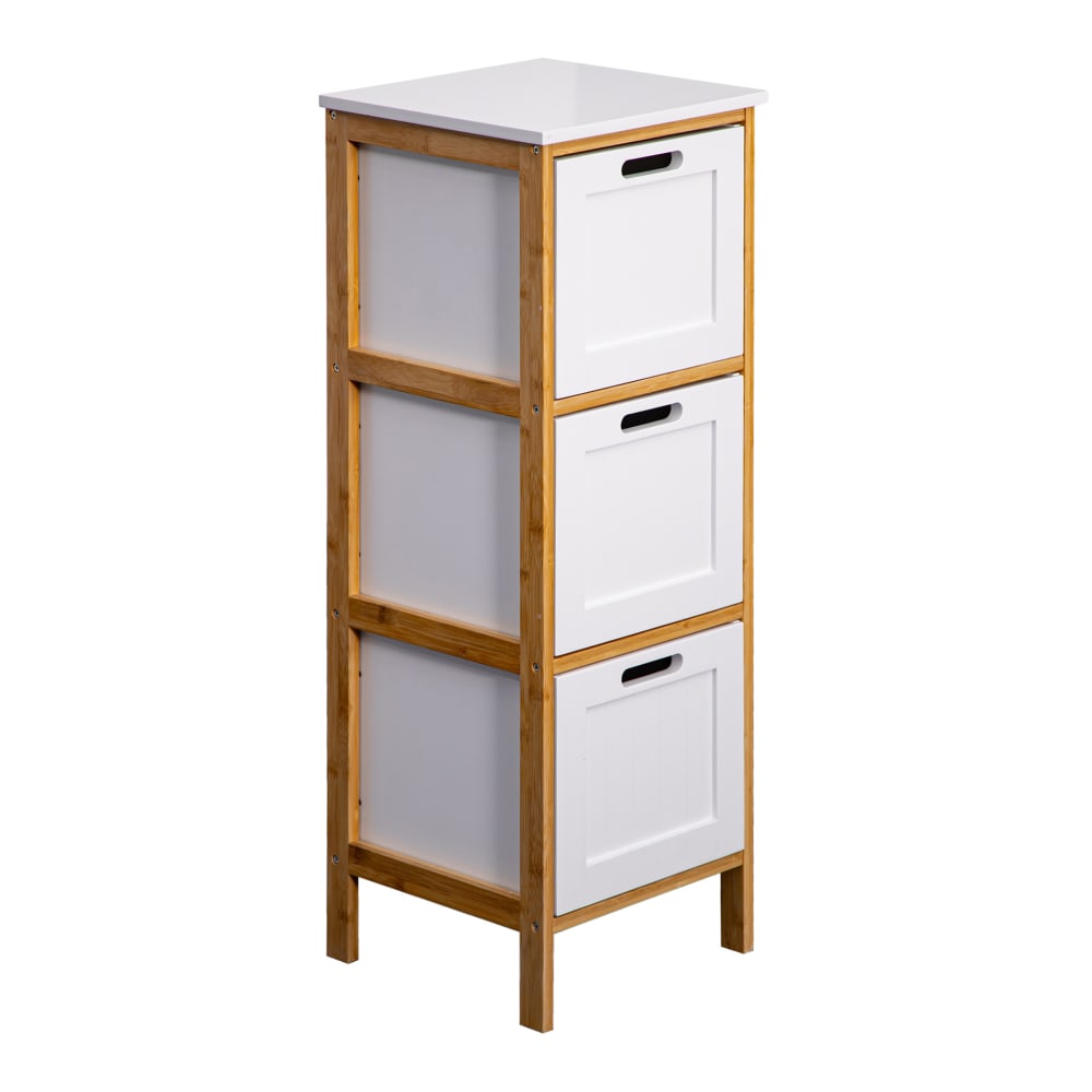 Badezimmerkommode mit 3 Schubladen aus MDF und Bambus, weiß und braun von Mobili Rebecca