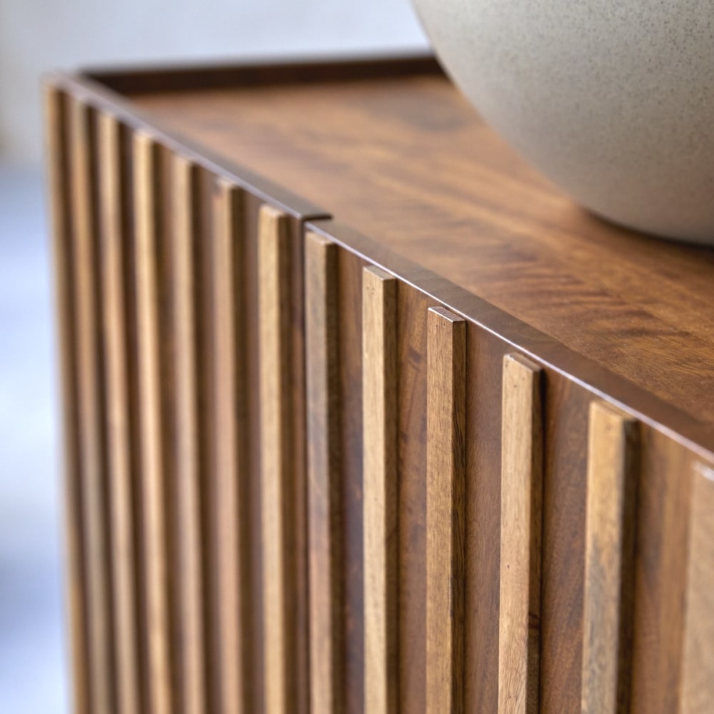 Erkunden Sie mit dem Badezimmermöbel Milo aus massivem Mangoholz neue Horizonte, ohne das Haus zu verlassen. Das exotische Design verleiht Ihrem Badezimmer einen Ethno-Touch und einen einzigartigen Charakter. Das Lamellendesign seiner Fronten ist unvergleichlich stilvoll und zeitlos schön. Zwei Ebenen:- 1 oberes Fach:H 15 x B 76 x T 40 cm- 2 untere Fächer :H 15 x B 38 x T 40 cmHöhe der Füße: 18,5 cm(Nutzmaße)Möbelstück wird separat verkauftBasisrahmen für die AufstellungTeilweise offene Rückwände vereinfachen den Einbau von Zu- und Abflüssen