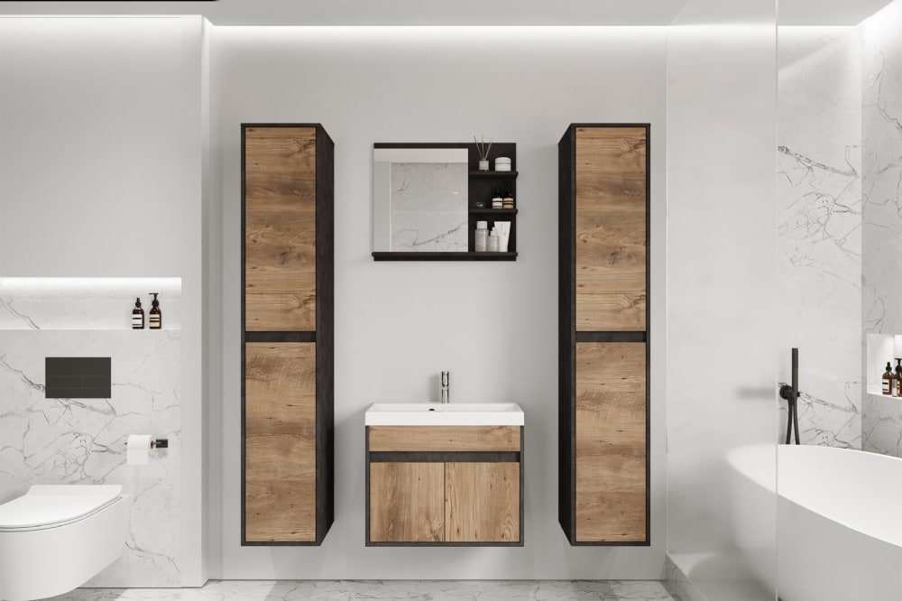 Die hängenden Schränke bieten viel Stauraum für Kosmetika und Zubehör, während sie Platz auf dem Boden freihalten ideal für kleine und große Bäder.