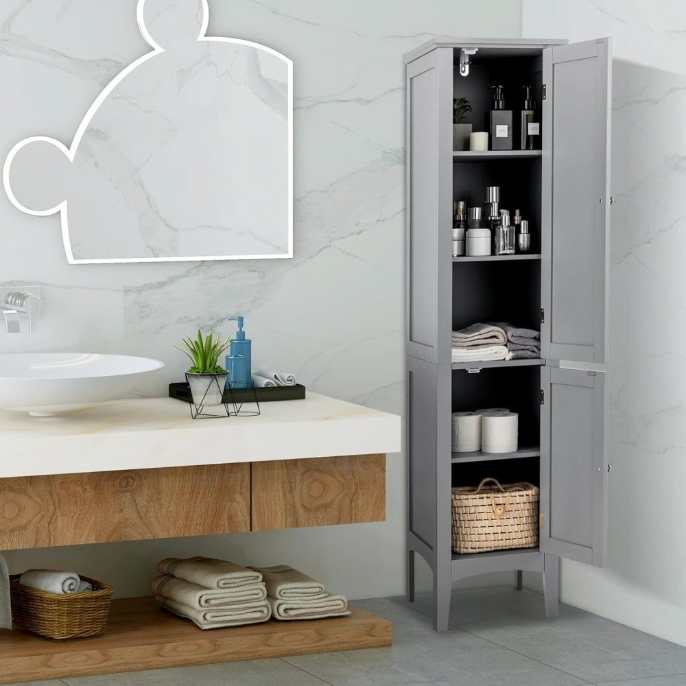 Badezimmerschrank hoch aus Holz 37 x 37 x 160 cm, Grau von Giantex