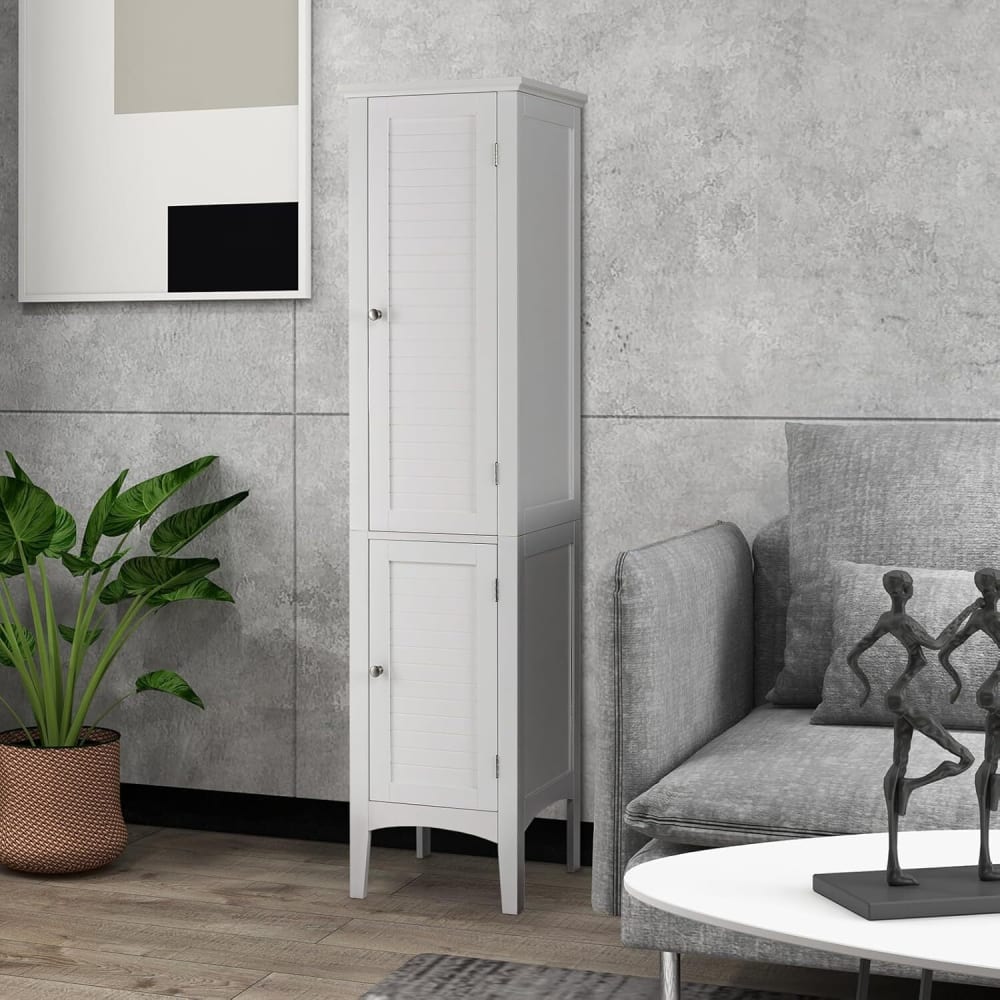 Badezimmerschrank hoch aus Holz 37 x 37 x 160 cm, Weiß von Giantex