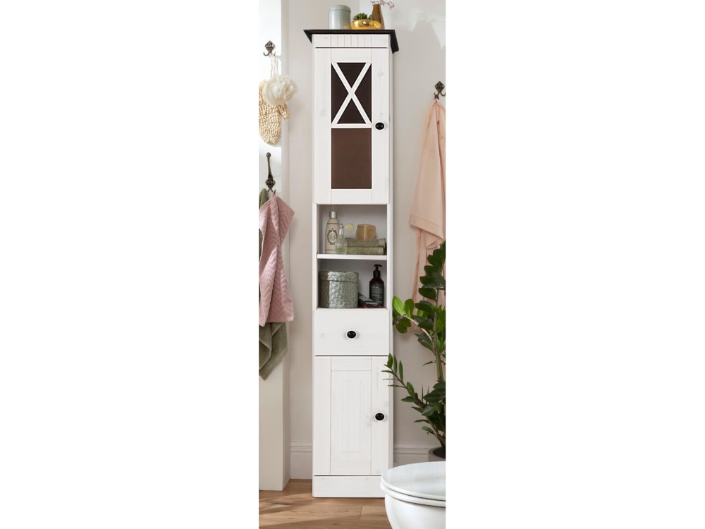 Badhochschrank mit 2 Türen 1 Schublade aus Kiefer lackiert Weiß von Loft24