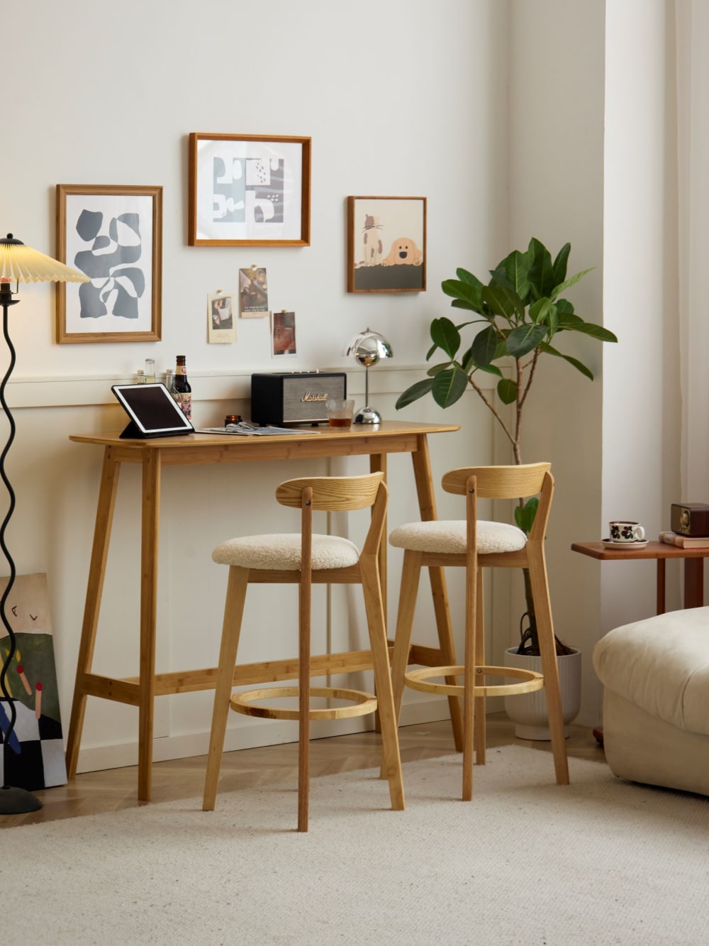 Barhocker (2er Set) aus Massivholz und Wolle Weiß von Nordlys