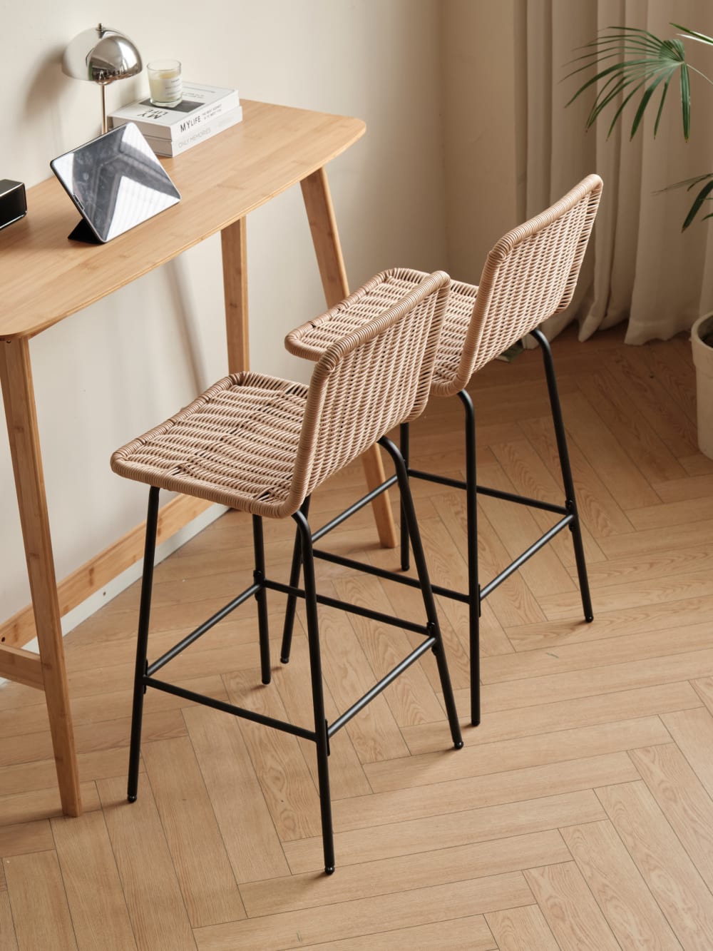 Barhocker (2er Set) aus Metall und Fasern Braun von Nordlys