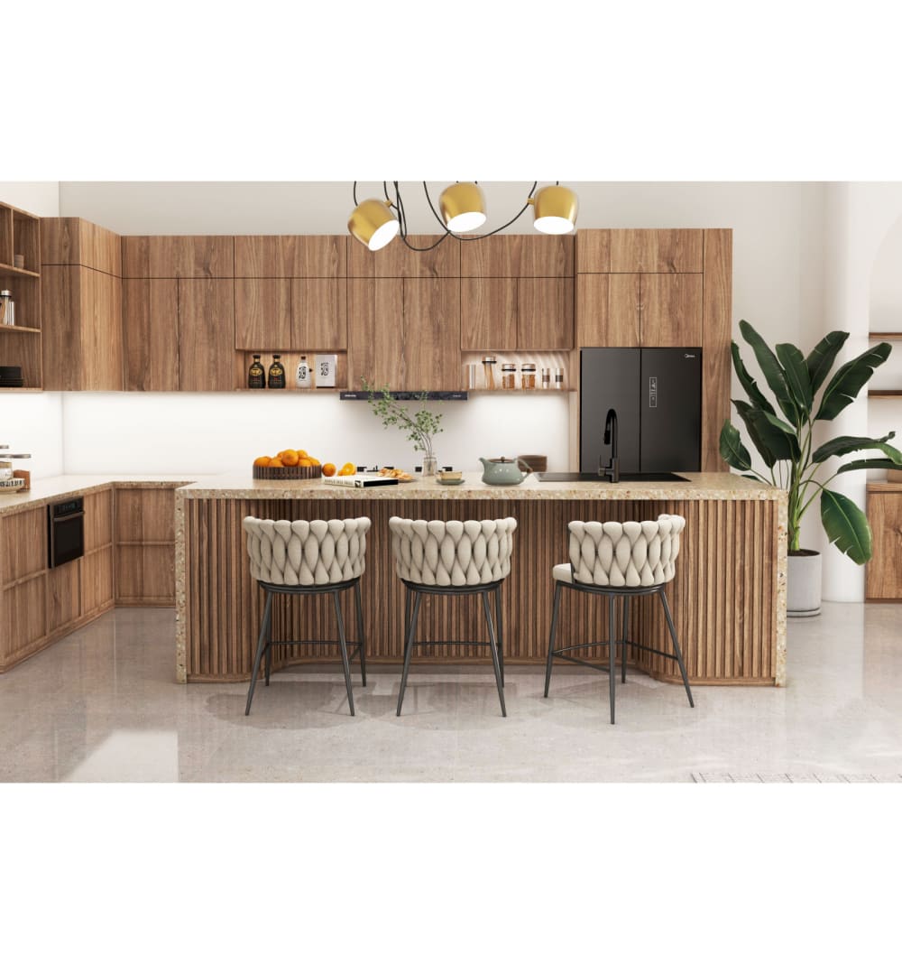 Der Barsessel TESSA vereint schicke Linien und modernen Geist mit Sitzkomfort und einem sehr dekorativen Look!Die Rückenlehnenpolsterung, die in das schwarze Stahlgestell eingeflochten ist, ist von den neuesten Trends inspiriert und verleiht dem Stuhl einen unnachahmlichen Stil. Die Rückenlehne ist mit einem schönen, leinenfarbenen Stoff bezogen.Das Modell ist in verschiedenen Farben erhältlich. Für harmonische Ensembles gibt es auch die Version als Tischsessel.