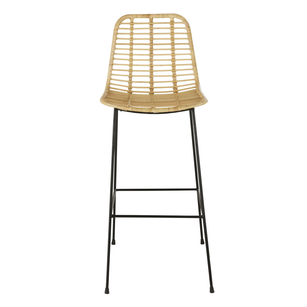 Barstuhl aus Rattangeflecht und schwarzem Stahl H65 von Maisons du Monde