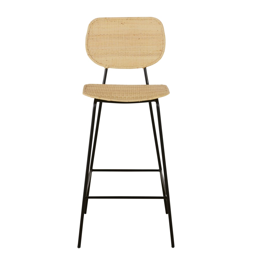 Barstuhl aus schwarzem Stahl und Rattangeflecht, H78cm von Maisons du Monde