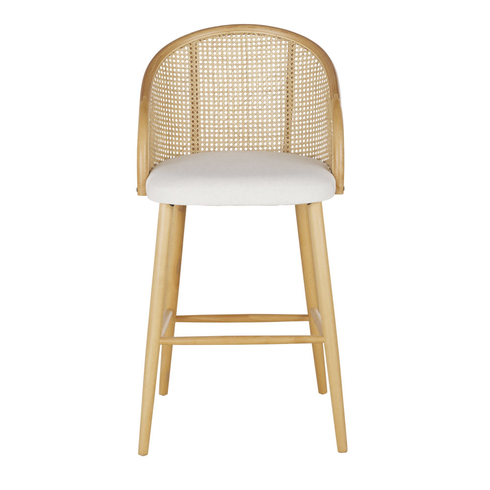 Barstuhl in Ecru aus Buchenholz und beigefarbenem Rattangeflecht H75 von Maisons du Monde