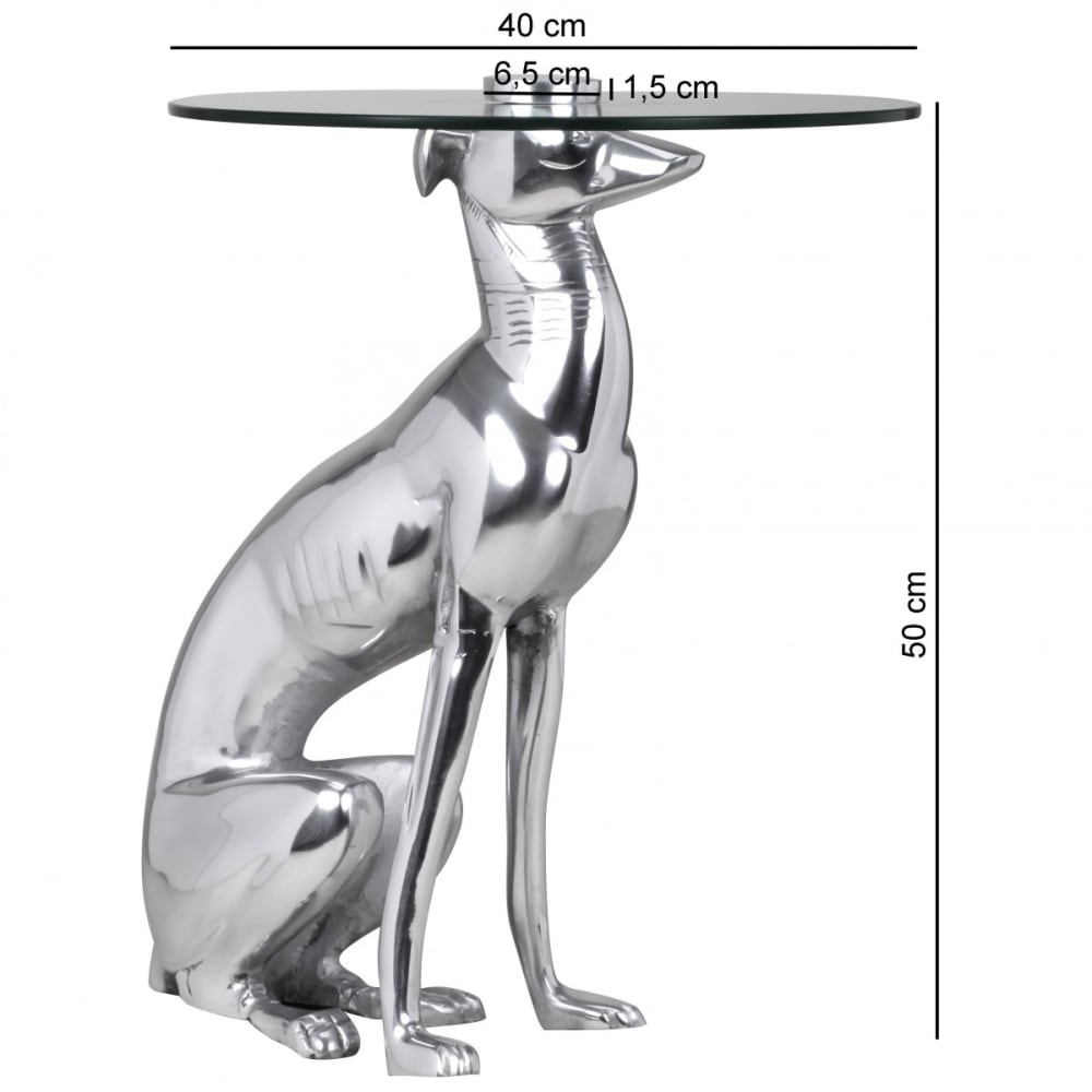 Elegant serviertDu liebst es ein bisschen extravagant? Es muss nicht die Norm sein, die Deine Wohnung in ein Zuhause verwandelt? Individuell einrichten kannst Du Dich mit FineBuy. Denn bei uns gibt es immer ausgefallene Möbel und Wohnaccessoires zu entdecken. Der stylische Beistelltisch ist ein gelungenes Beispiel für den Ideenreichtum pfiffiger Möbelhersteller. Ein stilisierter Windhund aus Aluminium balanciert eine gläserne Tischplatte auf seinem Haupt. Majestätisch kredenzt er Dir Deinen Kaffee am Nachmittag oder Dein Glas Wein am Abend.Flugs am EinsatzortKleine Tische haben den Vorteil, dass Du sie schnell dorthin tragen kannst, wo sie gebraucht werden. Durch ihr leichtes Gewicht und die gefälligen Maße fällt ein Transport nicht schwer. Der trendige Glastisch überzeugt zudem mit seinem auffälligen Tierdesign. Wunderbar peppt er das klassische Wohnzimmer mit der Drei- und Zweisitzer Couch auf. Im Industrial-Style macht er sich wegen der kühlen Note, die ihn umgibt, gut. In der Loftwohnung ist er beinahe schon ein Muss, während er im Landhaus-Look einen beliebten Stilbruch erzeugt.Nicht nur der Style ist außergewöhnlich. Auch das Fertigen per Hand ist in der heutigen Zeit keine Selbstverständlichkeit mehr. Freue Dich daher auf ein waschechtes Unikat, hergestellt in reiner Handarbeit. Den Wohnzimmertisch liefert Dir FineBuy praktisch zerlegt und leicht zu montieren kostenlos nach Hause. Mit wenigen Handgriffen passt Du die Tischplatte an die Tierskulptur an und kannst nach kurzer Zeit Deine erste Tasse Kaffee an dem Tischchen genießen.