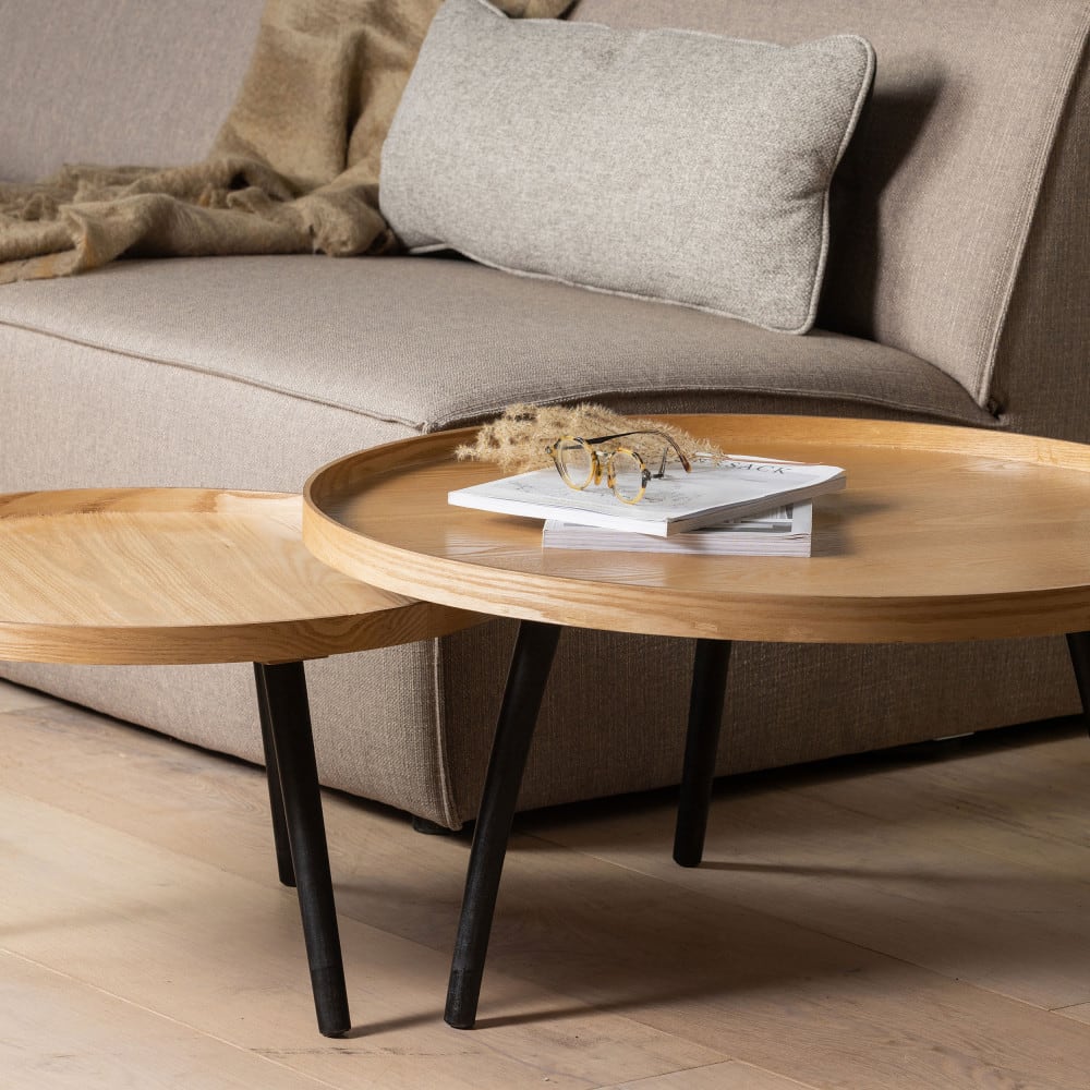 Dieser Beistelltisch aus der Mesa-Kollektion passt perfekt in jeden Wohnbereich. Seine schlichte und zugleich originelle Form verleiht ihm eine gewisse Vielseitigkeit in Bezug auf die Verwendung. Seine Tischplatte ist aus MDF gefertigt, einem sehr widerstandsfähigen Material. Die Beine sind aus Kiefernholz gefertigt und in mattem Schwarz gehalten, was dem Tisch einen sehr skandinavischen Touch verleiht. .