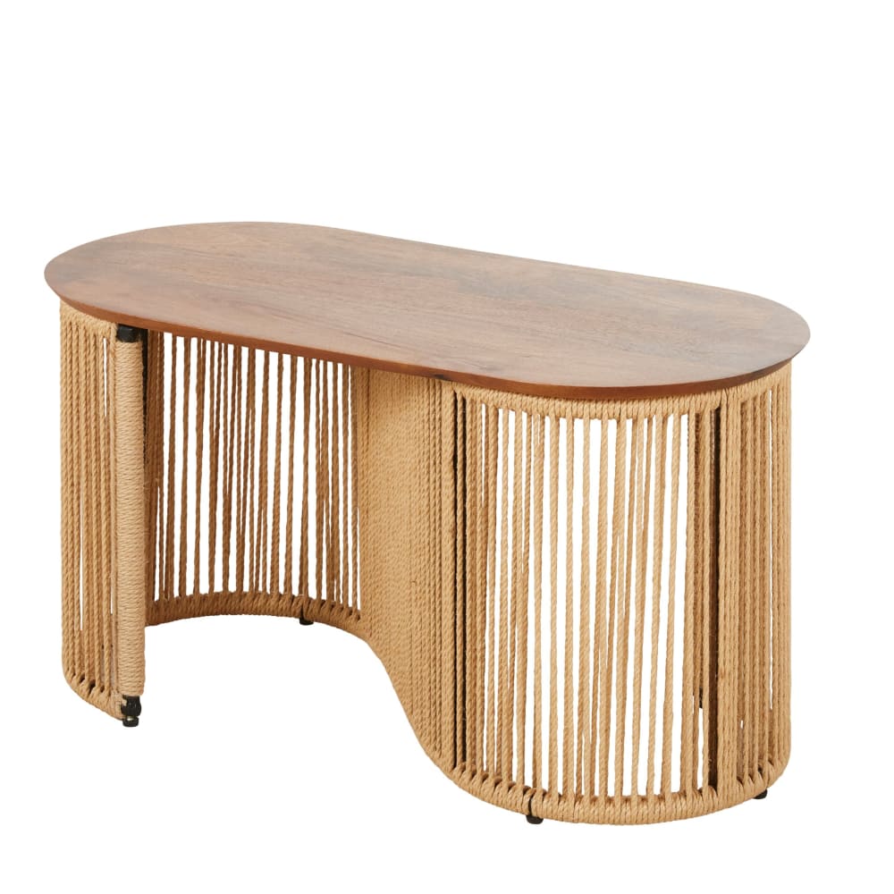 Beistelltisch aus Mangoholz und Stahl mit Jute-Bezug, dunkelbraun von Maisons du Monde