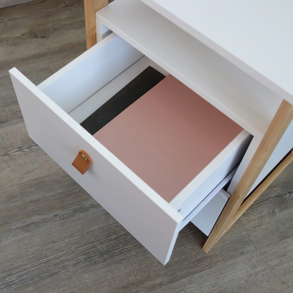 Präsentieren Sie unseren kleinen Beistelltisch TAROLO III im Scandi-Style, der sich ideal für jedes Zuhause eignet sei es im Wohnzimmer, im Home Office oder im Jugendzimmer. Mit seinem schlichten und eleganten Design fügt er sich nahtlos in jede Einrichtung ein. Der Tisch verfügt über zwei leichtgängige, große Schubladen, die ausreichend Stauraum für Bücher, Schreibwaren oder persönliche Gegenstände bieten. Der Rahmen aus Bambus verleiht dem Möbelstück nicht nur Stabilität, sondern auch einen natürlichen Charme. Dieser universelle Beistelltisch ist die perfekte Ergänzung für jeden Raum und bringt skandinavische Eleganz in Ihr Zuhause!